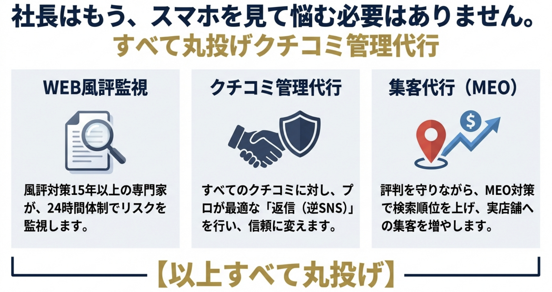 ※削除代行ではありません。“返信と設計”で評判を資産に変える専門サービスです。